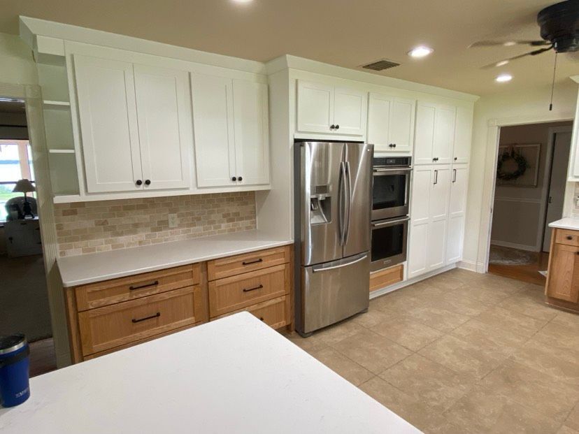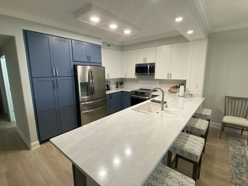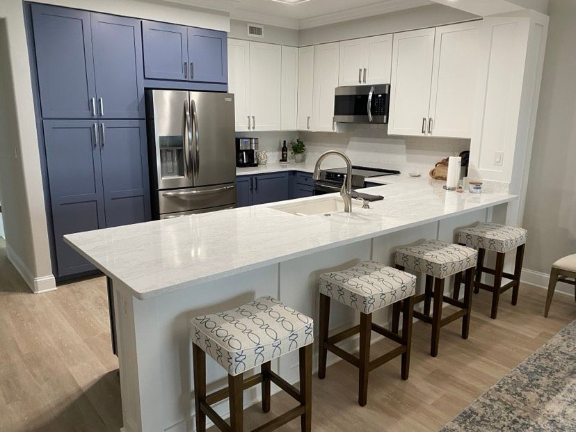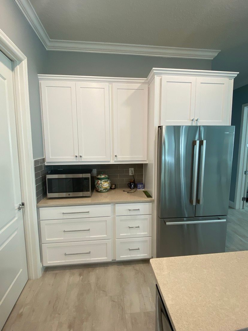 At Kitchen Solutions, we specialize in refreshing local kitchens across Jacksonville, FL, area. Our services include high-quality cabinet refacing using Elias Woodwork, custom cabinet and storage solutions tailored to your space, as well as countertop replacements to complete your kitchen transformation. Explore our gallery to see how we’ve helped homeowners achieve beautiful, functional kitchens that reflect their unique style.